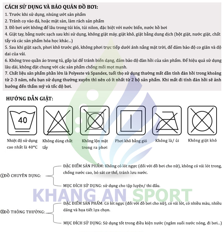 CÁCH SỬ DỤNG VÀ BẢO QUẢN ĐỒ BƠI:
