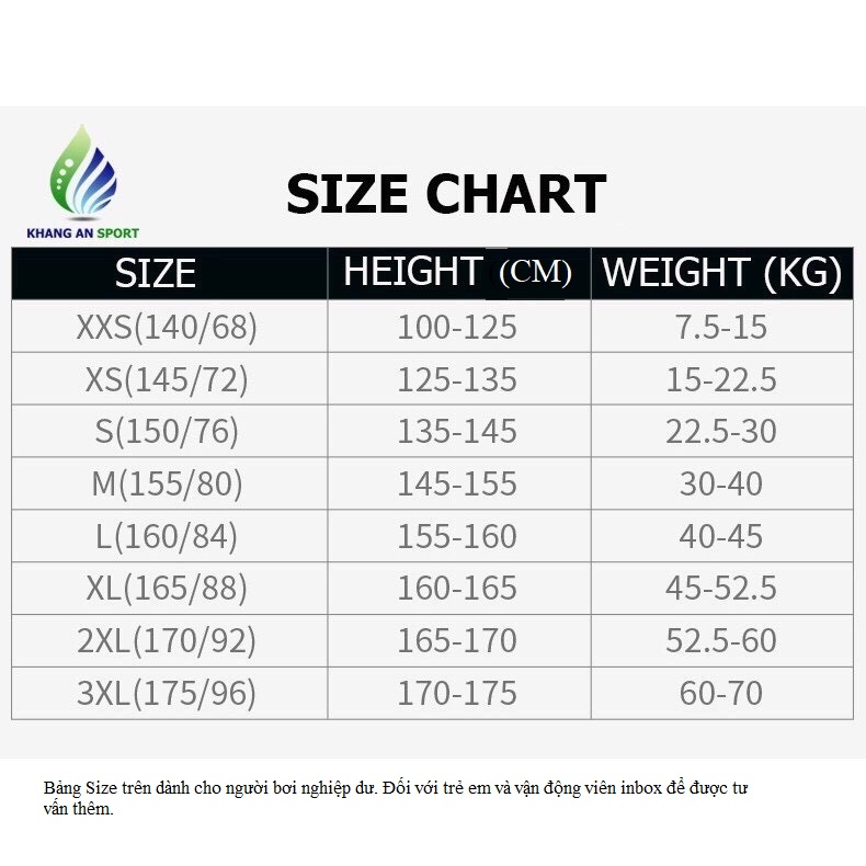 Bảng size trên dùng cho người dùng phổ thông. Đối với vận động viên inbox để dược tư vấn thêmCÁCH SỬ DỤNG VÀ BẢO QUẢN ĐỒ BƠI:
